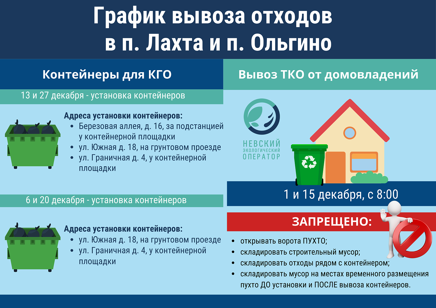 Также сообщаем, что подомовой вывоз мусора будет осуществляться 1 и 15 декабря с 8:00.