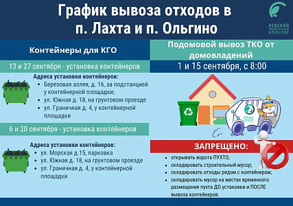 Также сообщаем, что подомовой вывоз мусора будет осуществляться 1 и 15 сентября с 8:00.