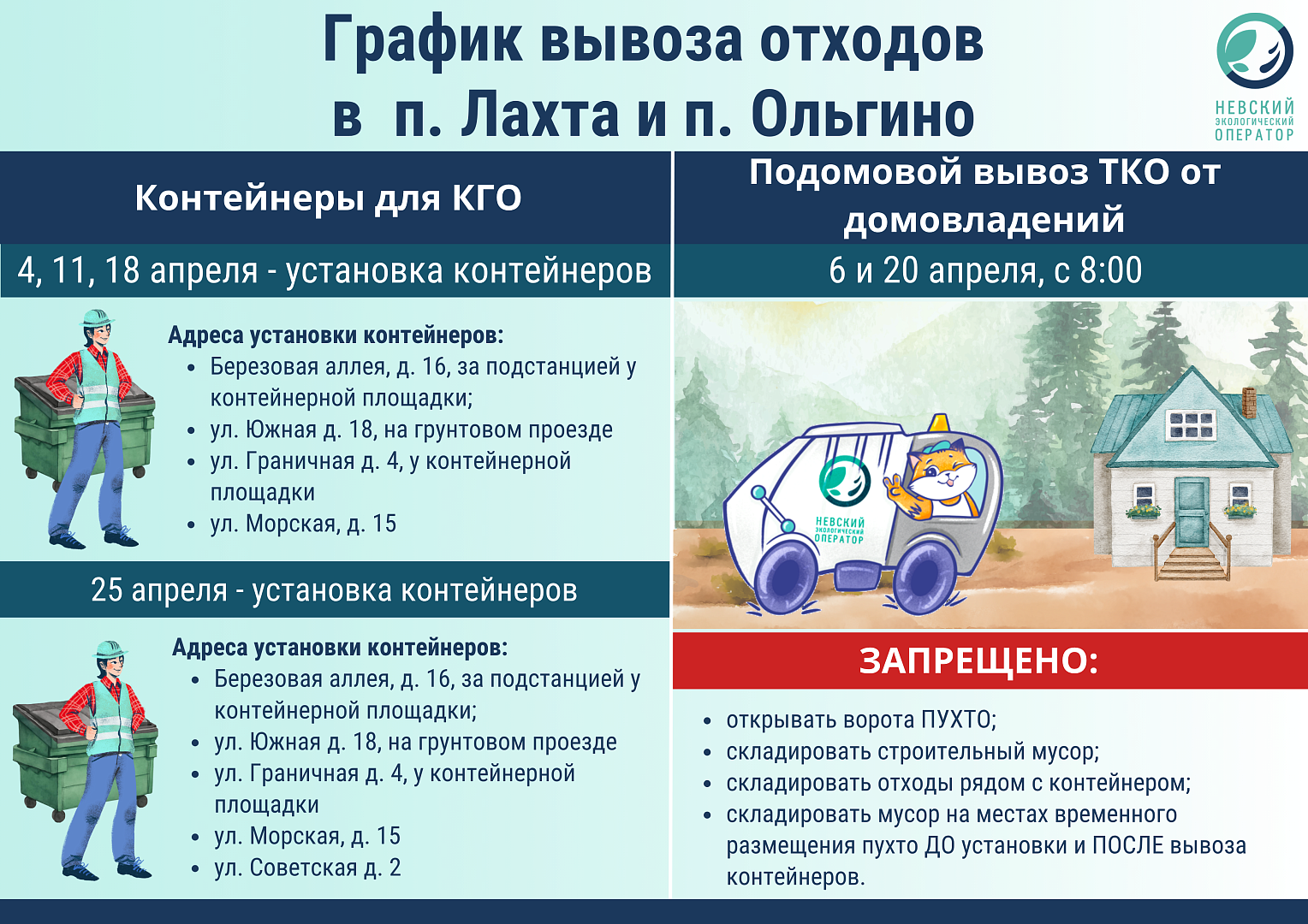 Также сообщаем, что подомовой вывоз мусора будет осуществляться 6 и 20 апреля с 8:00.